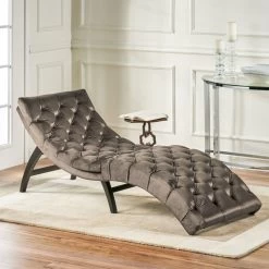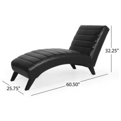 Hixon Contemporary Tufted Upholstered Chaise Lounge, Midnight + Espresso