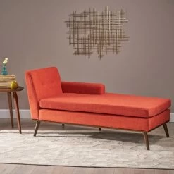 GDF Studio Sophia Mid-Century Modern Fabric Chaise Lounge, Muted Orange