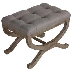 Cortesi Home Falmouth X-Bench Ottoman With Solid Wood Legs, 17″, Beige Fabric
