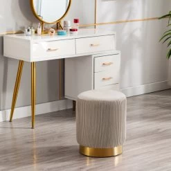 Swivel Ottoman Rotating Round Footrest 16″ Upholstered PU Brown