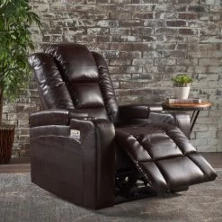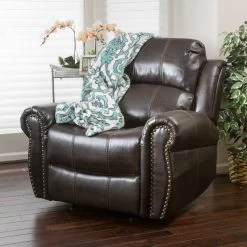 GDF Studio Harbor Dark Brown Leather Glider Recliner Club Chair