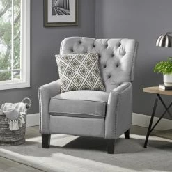 GDF Studio Elizabeth Tufted Back Recliner, Light Gray/Fabric