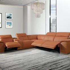 Frederico Genuine Italian Leather 6-Piece 1 Console 3-Power Reclining Sectional, Camel