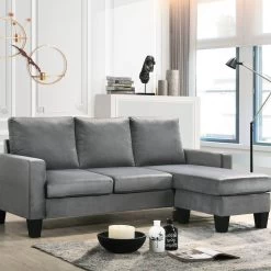 Hollywood Velvet Tufted Sofa With Reversible Chaise, Navy Blue