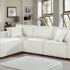 Willowleaf 7Pc Modular Sectional Sofa Chaise Ottoman, Light Gray Linen