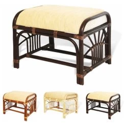Ottoman Footstool Handmade ECO Natural Rattan Wicker With Cream Cushion, Dark Br
