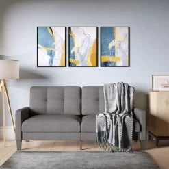 3 Piece Convertible Sectional Sofa Upholstered Fabric L Shaped Couch, Dark Gray