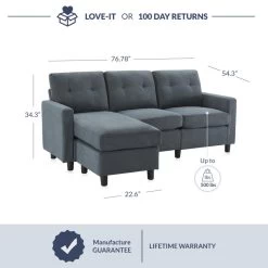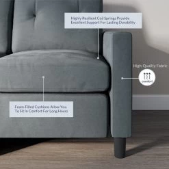 Thanks to its compact size and versatile design, this sectional couch is perfect for small spaces such as apartments or dorm rooms. Foam-filled cushions provide long-lasting comfort and support. Whether you’re reading a book, watching TV or spending time with family and friends, this sofa will provide you with a comfortable place to sit.