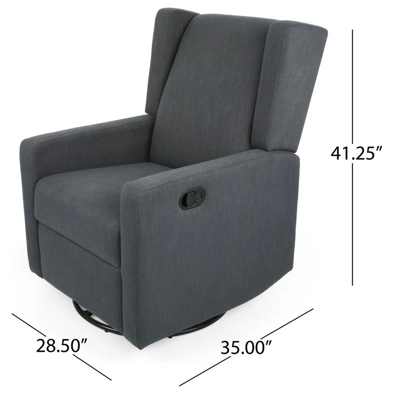 CONTEMPORARY: Our recliner has the look, feel, and design of contemporary style with its plush upholstery, wingback design, and convenient swivel function. With a classy and functional design, this recliner will give your room an instant upgrade in style and comfort.