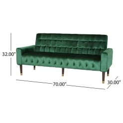 Enhance your home with a sophisticated atmosphere by simply anchoring your interior space with our gorgeous sofa. This sofa combines understated, organic materials and refined velvet upholstery to create a piece that is worthy of any room. Featuring lovely button tufting and waffle stitching, our sofa offers your decor both texture and upgraded style. With birch wood legs that are finished with a striking gold accent, this sofa is ideal for many types of decor, blending seamlessly with your existing decor.