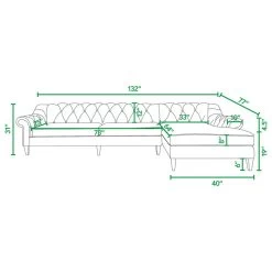 - Overall Dimensions: 132″W X 77″D X 31″H