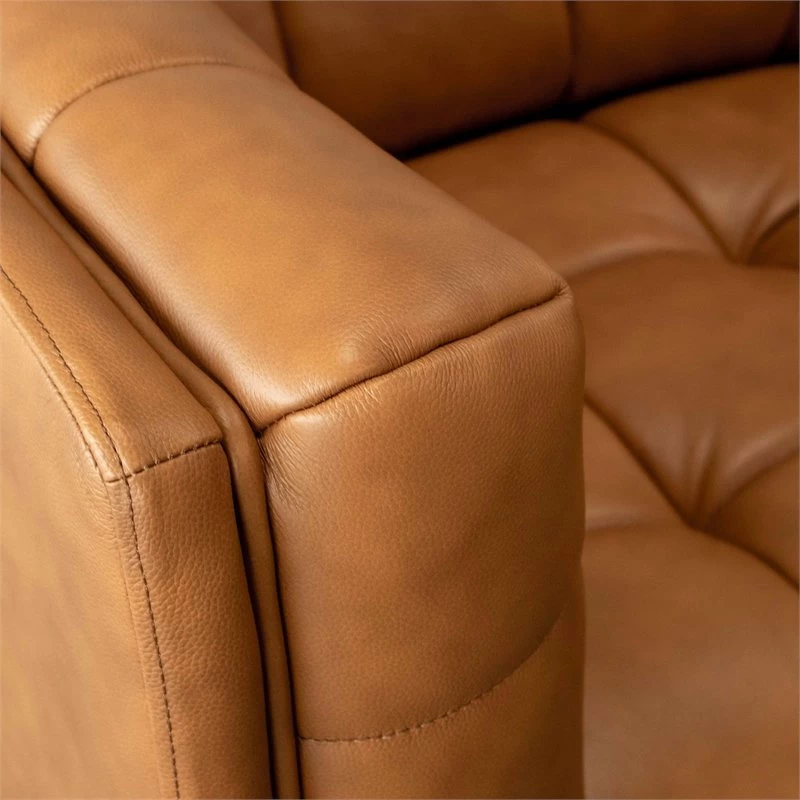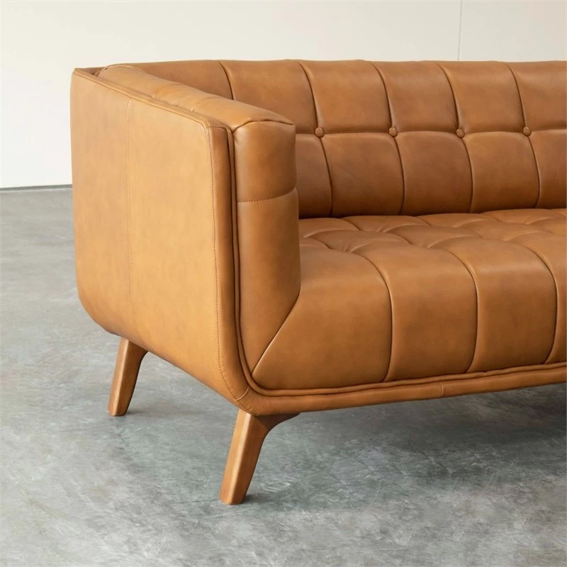 This comfortable living room couch will provide a fresh and pleasing look to your space and will be the center of attention thanks to its tufted design. This designer style top grain leather chesterfield sofas creates an inviting space for your guests or family entertainment activities.