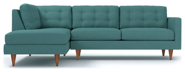 The Logan 2-Piece Sectional Sofa is luxurious comfort at its very best. It evokes the style of old Hollywood glamour with its button-tufted back cushions and tapered wooden legs. Perfect for entertaining guests or stretching out for a movie marathon, this versatile piece is both stylish and cozy.