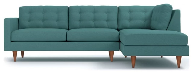 The Logan 2-Piece Sectional Sofa is luxurious comfort at its very best. It evokes the style of old Hollywood glamour with its button-tufted back cushions and tapered wooden legs. Perfect for entertaining guests or stretching out for a movie marathon, this versatile piece is both stylish and cozy.
