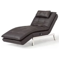 Pemberly Row Faux Leather Convertible Chaise Lounge In Brown