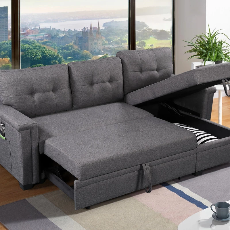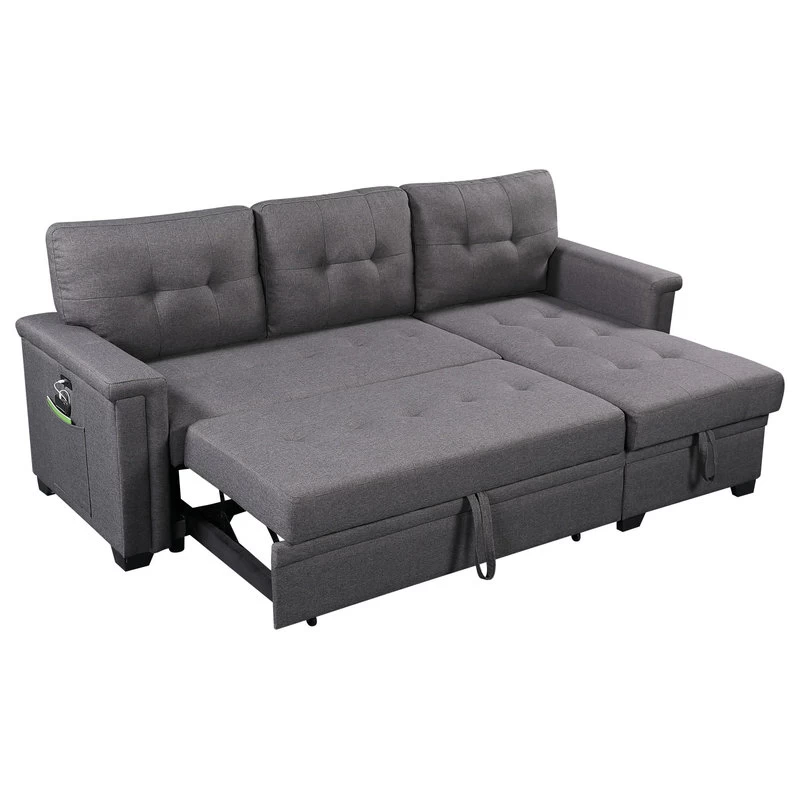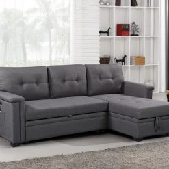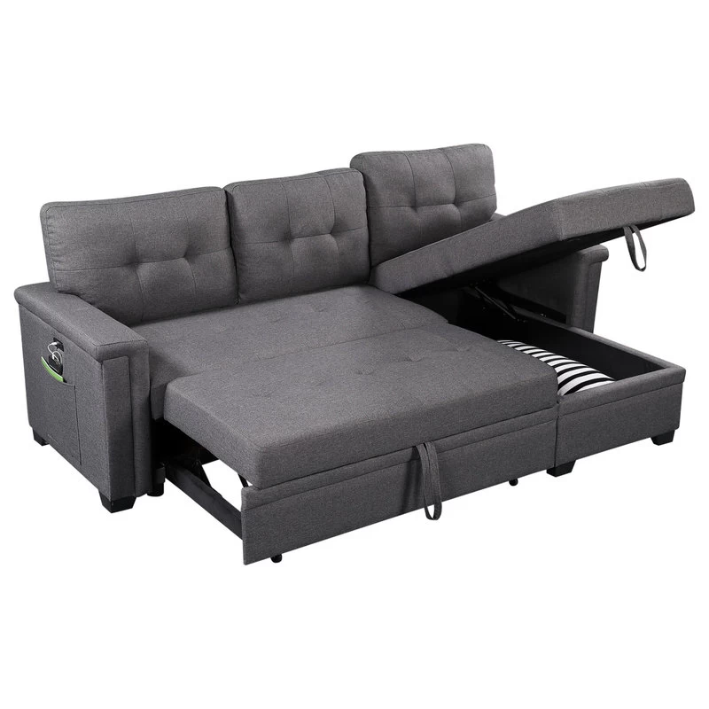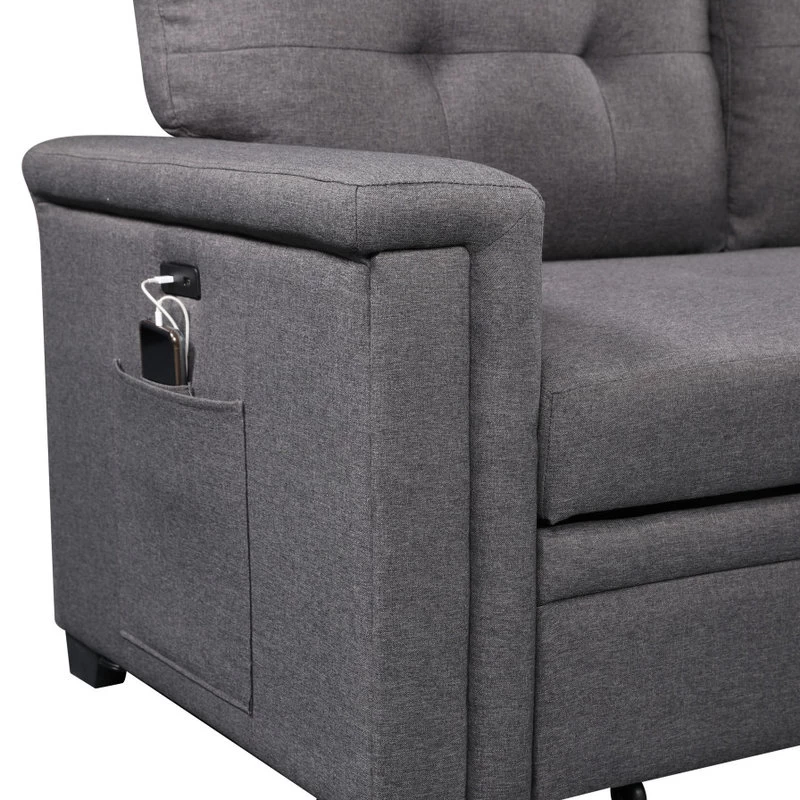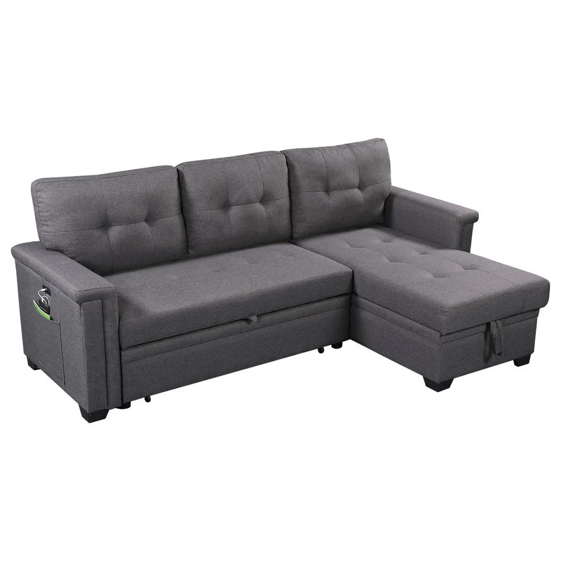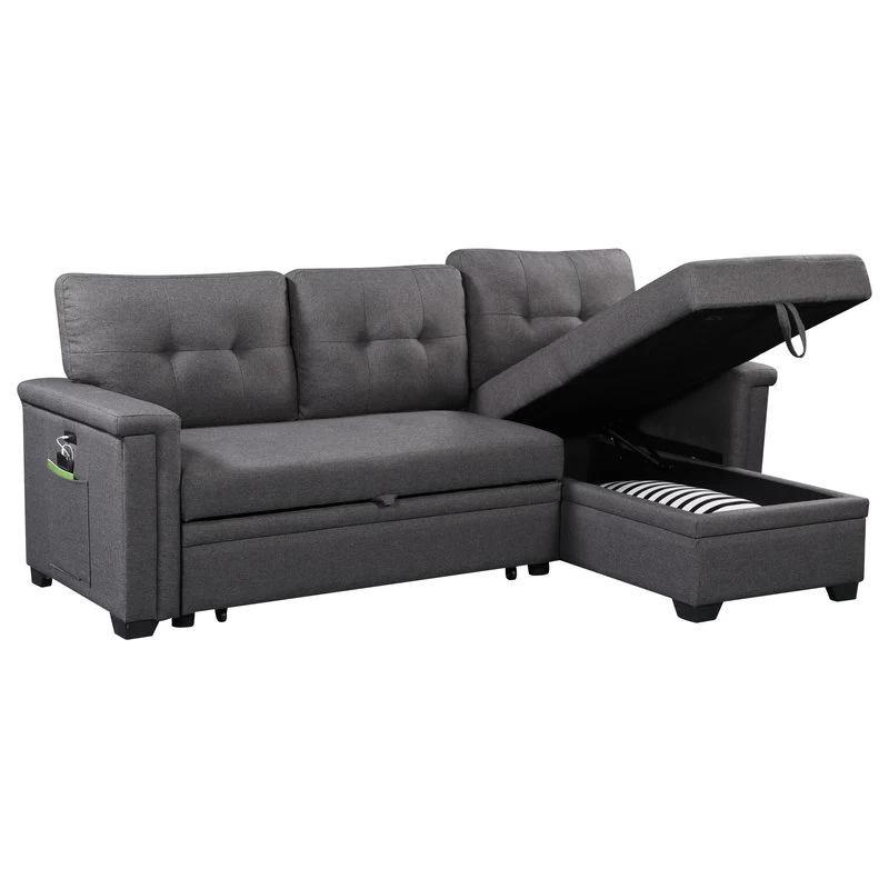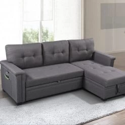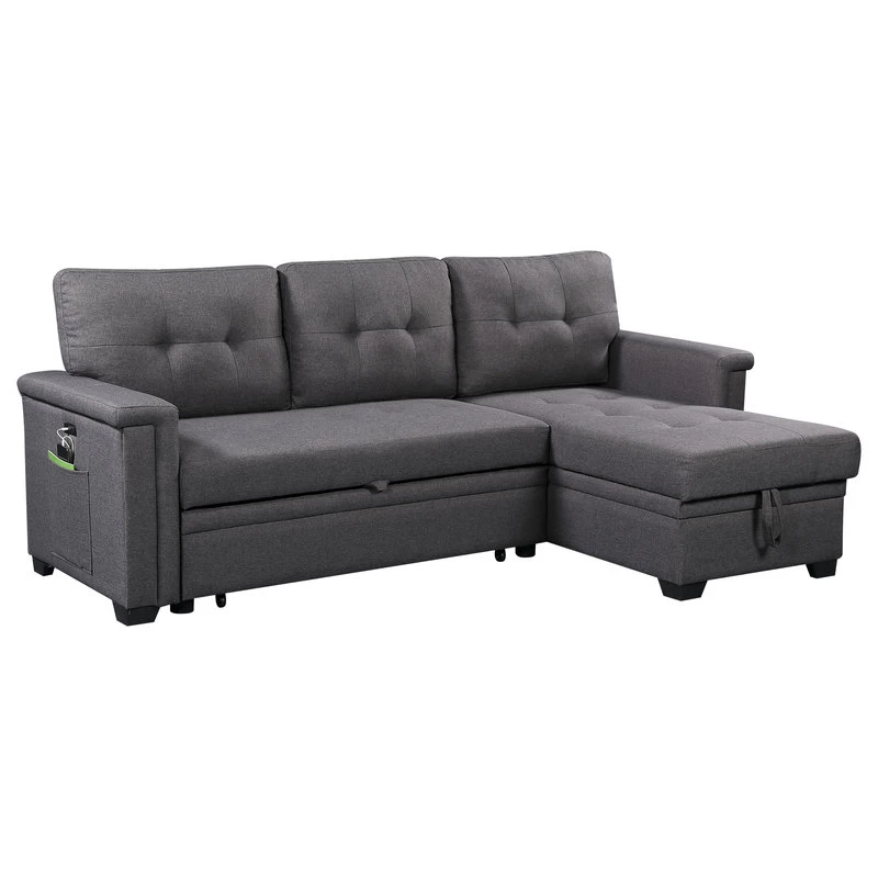Limited in living space? The Ashlyn Collection is the perfect choice for you! This three piece reversible sectional is easy to assemble. With a pull out bed, USB charging ports, spacious storage chaise, and side pocket and pouch for all your essential needs. The Ashlyn collection is the ultimate functional sofa you ever need, use it as a bed, a storage, and a place where you can charge your phone while chilling, and enjoying your favorite TV show and movie.