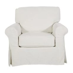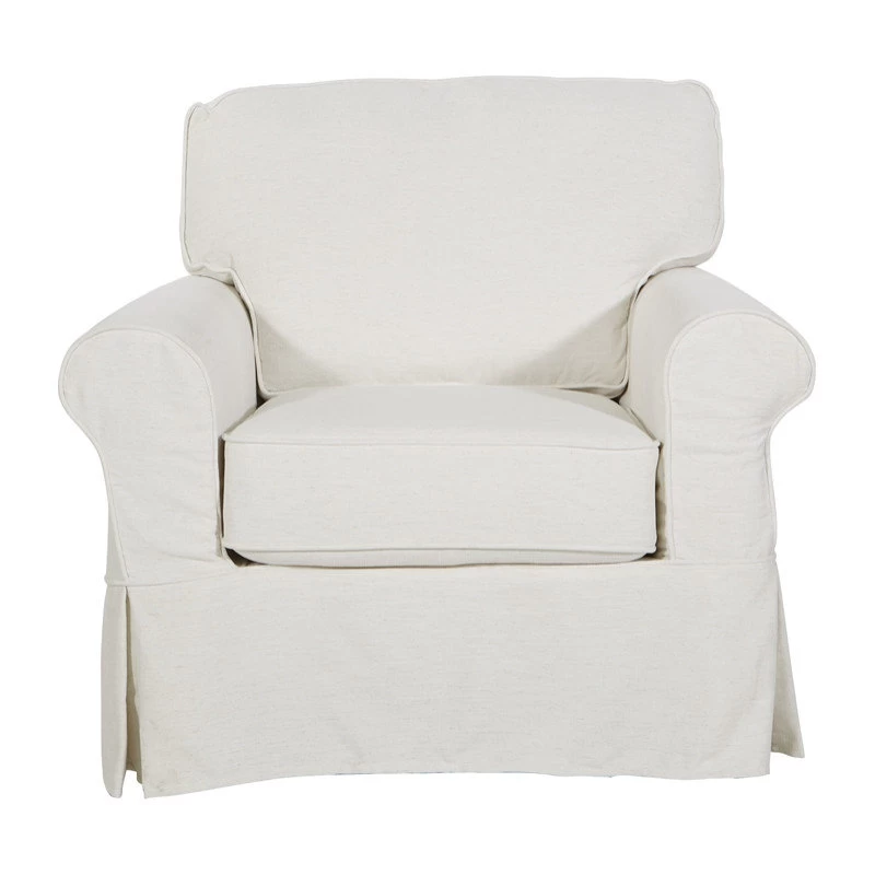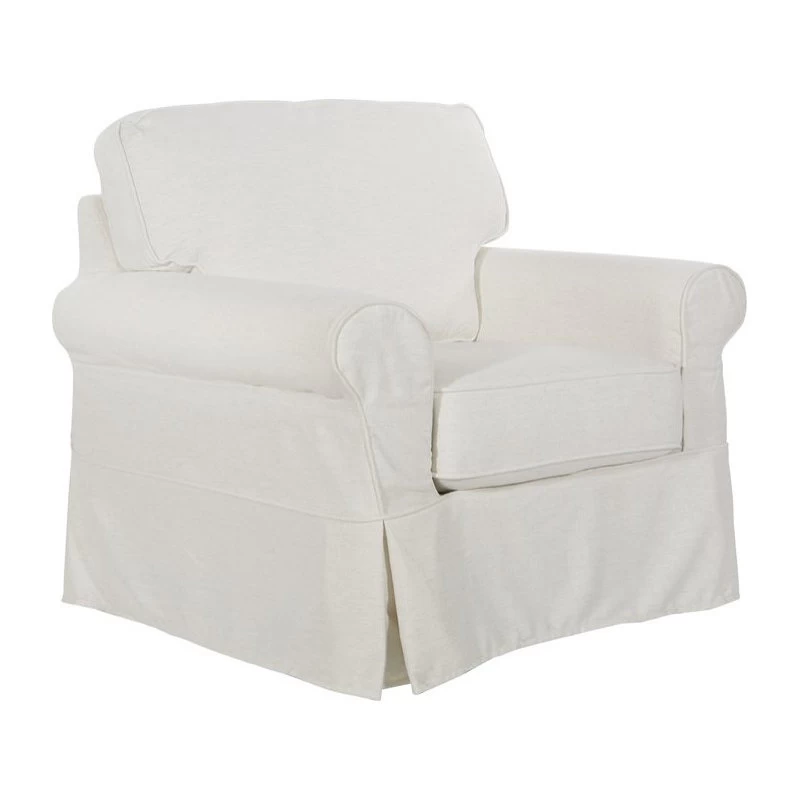 Create the perfect Cottage home with all its charm and relaxed ease with our Ashton Slipcover Sofa, Loveseat and Arm Chair Collection. Classic rolled arms, tailored piping and flirty kick pleat skirt provide the casual, livable style a well-designed home celebrates. Whether you wish to decorate a living room with the complete sofa, loveseat and arm chair collection, purchase a pair of arm chairs for a sunny reading nook, or just a single stand-out sofa for your family room, your style will shine through with a classic feel that welcomes all to sit and relax. Soft fabric slipcovers slip effortlessly on and off for easy, worry-free, washable upkeep. Our deep 26” box cushions are reversible and built of high resiliency foam, wrapped in thick poly-fiber and set on sinuous spring supports for long-lasting good looks. Solid wood legs and corner block construction complete the high-quality integrity of these thoughtfully designed furnishings.