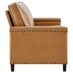 Sit back and relax amidst streamlined style and supportive comfort with the Ashton Vegan Leather Loveseat. Perfect for the living room, bedroom, office, or lounge area, this loveseat is enriched with a tailored profile, separate seat cushions, and matte black nailhead trim. Upholstered in vegan leather, this two-seater sofa is padded with dense foam and complete with a spring pocket support system to offer a premium seating experience. Durably crafted, this loveseat rests on solid wood legs with non-marking foot pins to protect flooring. Say goodbye to the days of hauling heavy furniture because Ashton ships in a conveniently portable box that’s easily maneuverable up staircases and narrow hallways. Assembly required. Loveseat Weight Capacity: 1103 lbs.