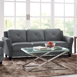 Sit back and relax amidst streamlined style and supportive comfort with the Ashton Vegan Leather Loveseat. Perfect for the living room, bedroom, office, or lounge area, this loveseat is enriched with a tailored profile, separate seat cushions, and matte black nailhead trim. Upholstered in vegan leather, this two-seater sofa is padded with dense foam and complete with a spring pocket support system to offer a premium seating experience. Durably crafted, this loveseat rests on solid wood legs with non-marking foot pins to protect flooring. Say goodbye to the days of hauling heavy furniture because Ashton ships in a conveniently portable box that’s easily maneuverable up staircases and narrow hallways. Assembly required. Loveseat Weight Capacity: 1103 lbs.