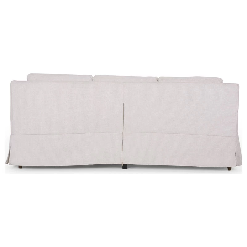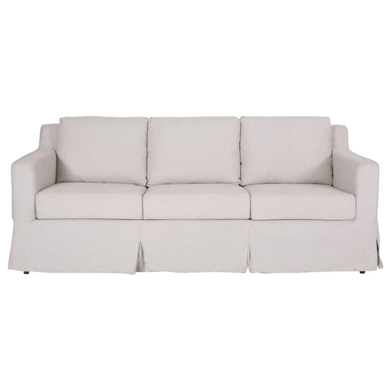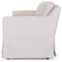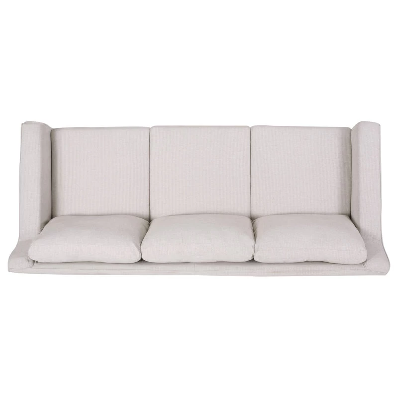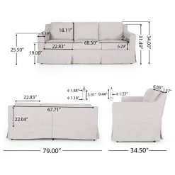 Center your interior space around cozy seating and classic style with a sofa of outstanding design. Perfectly balancing smooth upholstery with a sturdy wood frame, this impressive three-seater sofa offers your home a charming contemporary upgrade. This piece features clean, straight lines and a delightful skirt, making this a streamlined statement piece that can change the whole flow of your living room. Completed with sleek tapered legs made of birch wood, this refined sofa will turn any interior space into a stunning masterpiece.CONTEMPORARY DESIGN: Featuring beautiful upholstery, a lovely skirt trim, and tapered legs, our sofa offers the look, feel, and design of a truly contemporary piece. With a minimalistic yet refined structure, this piece brings out a simplistic style that emphasizes comfort and functionality.UPHOLSTERED: Our sofa is generously upholstered, giving any room a refined appearance. This provides a smooth, immaculate texture for this piece as well as plush seating for extra comfort.BIRCH WOOD LEGS: This sofa is supported by beautifully tapered birch wood legs, which offer an attractive look and durable structure. Its fine grain takes stains well, giving this piece a gorgeous finish.DIMENSIONS: Choose an accessory that is the perfect size for you and your furniture. This sofa is 79.00″W x 34.50″D x 34.00″H. You will love how much your space can transform with the simple addition of this charming sofa.ASSEMBLY REQUIRED: Some assembly is required for this sofa. All of the instructions and tools needed for assembly are included.