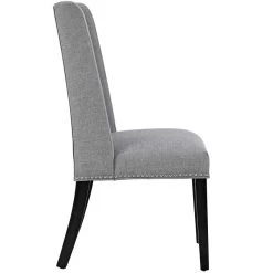 Explore the vast riches of a treasured heritage with the Baron Dining Chair. Designed to resonate elegance, Barons features a charming back and polished nailhead trimmed seat with a dash of grace and noble appeal. Complete with dense foam padding, fine fabric upholstery, solid wood frame and legs with non-marking foot glides, Baron is a stylish dining chair perfect for the modern home.