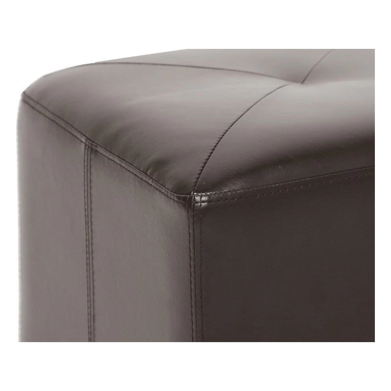 - Cube-shaped ottoman in brown bonded leather