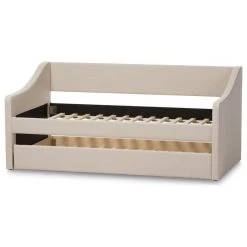 The Barnstorm modern and contemporary beige fabric upholstered daybed with guest trundle bed will help bring an understated but unmissable sense of contemporary taste to any modern interior. Covered in beige fabric, this sofa bed features a clean and distinct design that belies the high level of comfort offered. Constructed of hardwood, plywood and engineered wood, the Barnstorm is built too last. Featuring swooping arms, the Barnstorm is ideal as a daybed in its own while the wheeled trundle bed provides an additional sleeping space for your guest. Offering a number of different styling solution, this versatile 3-in-1 furniture multitasks as a daybed, sofa and guest bed. For studio apartment and condominium where space is limited, the Barnstorm could be your reading nook during the day time while transforming into your guest bed for two by rolling out the trundle. In your living room, family room or home office, the daybed is a good option for extra seating space during day time while transforming into guest bed for two at night.