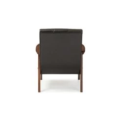 Baxton Studio Nikko Faux Leather Wooden Lounge Chair, Black