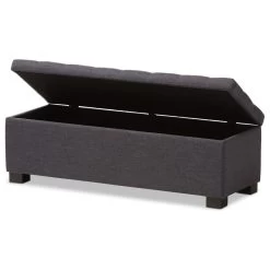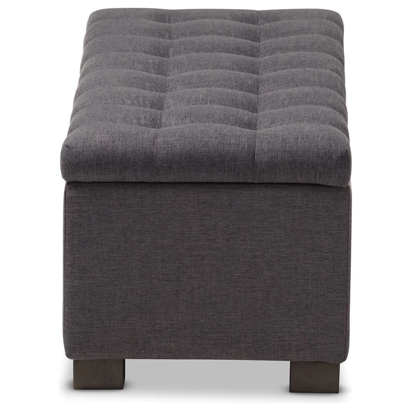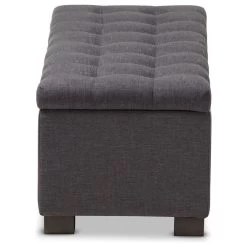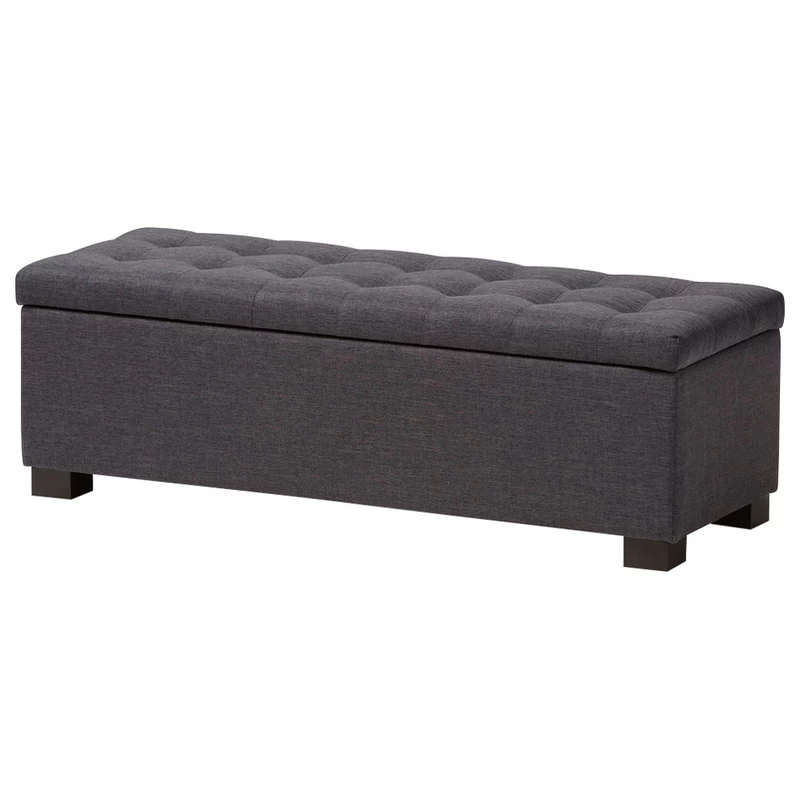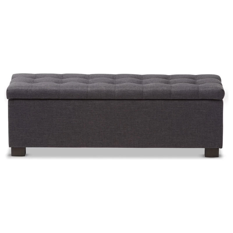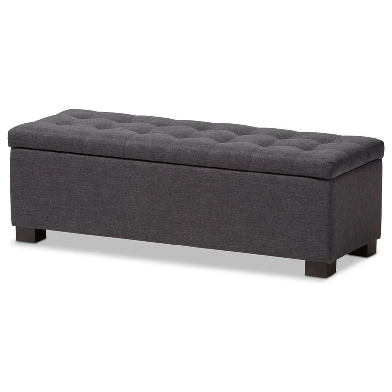 Baxton Studio Roanoke Upholstered, Grid-Tufting Storage Ottoman Bench, Dark Gray