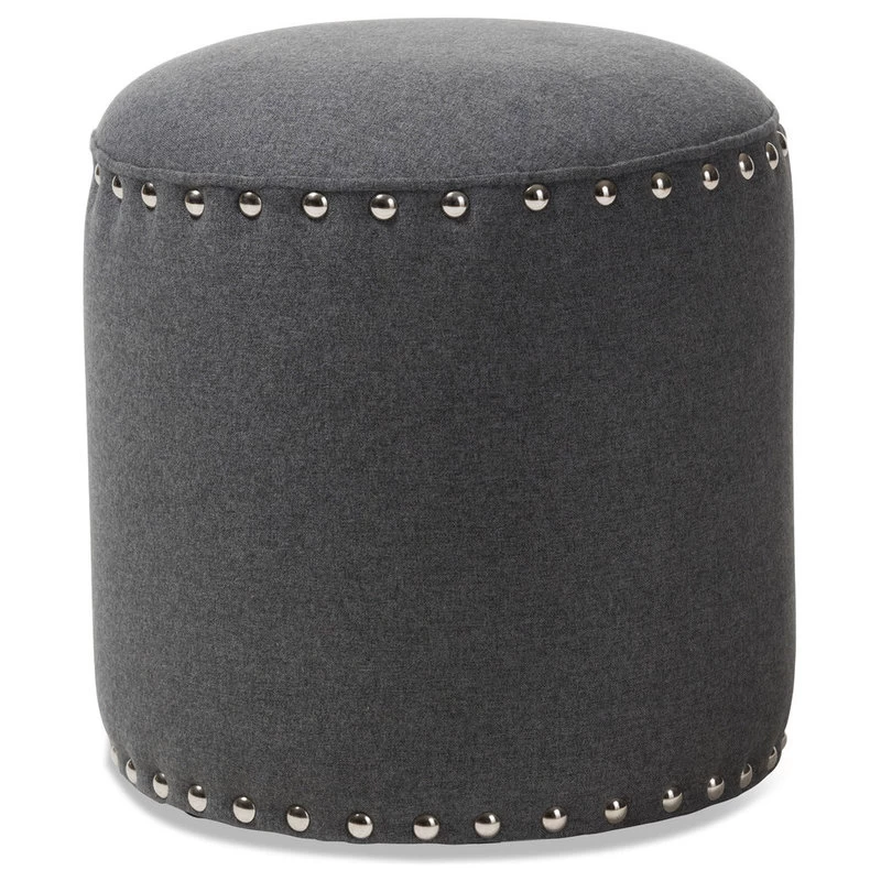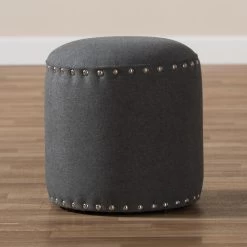 Baxton Studio Rosine Upholstered Nail Trim Ottoman, Gray