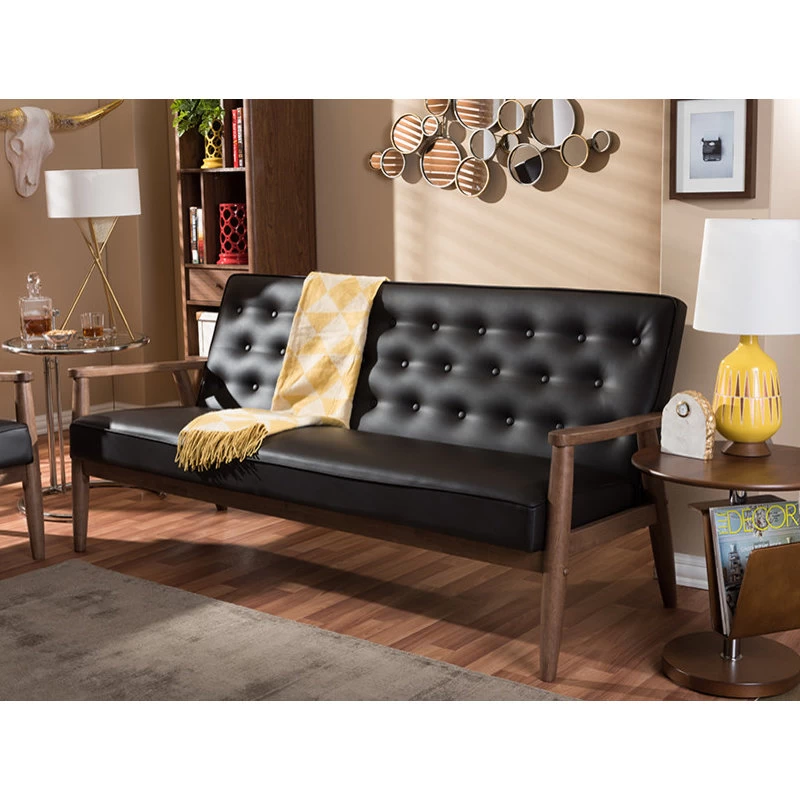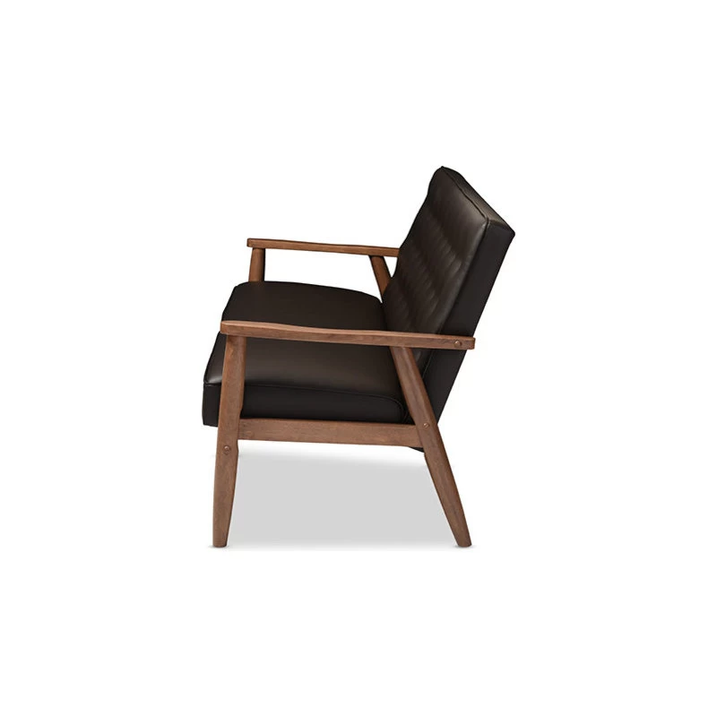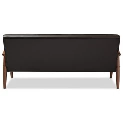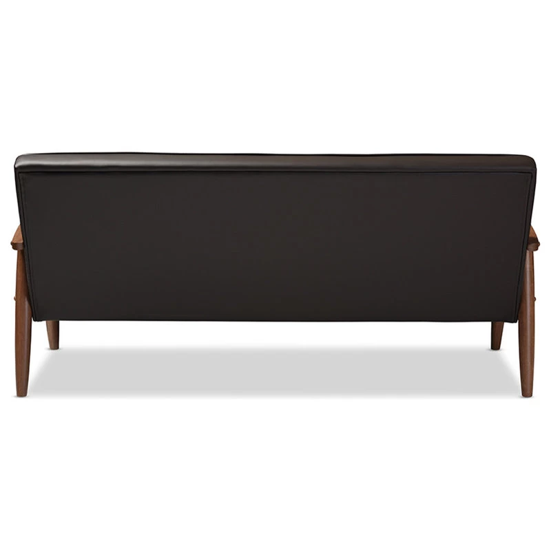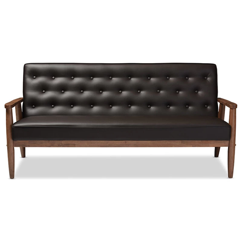 Baxton Studio Sorrento Retro Upholstered Wooden 3-Seater Sofa, Brown Faux Leather