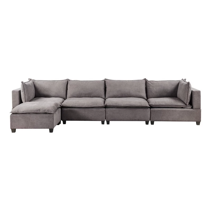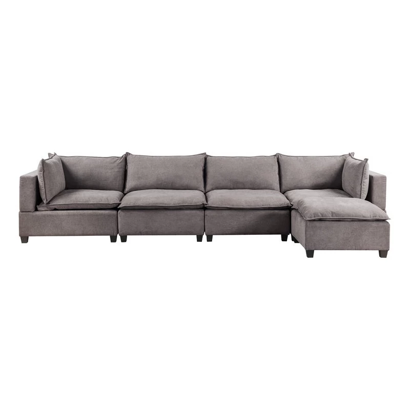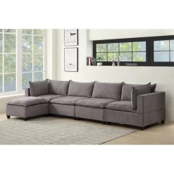 Sit back and relax in the Bowery Hill Collection! Crafted from solid wood and fine fabrics, this spacious modern contemporary style reversible modular sectional sofa with ottoman will welcome you and your guests to enjoy your activities with style and comfort. Featuring down feather filled cushions, pocket coil and foam seating, and quality woven fabric, this European Style living room set offers a timeless look and is the leader of furniture trends.