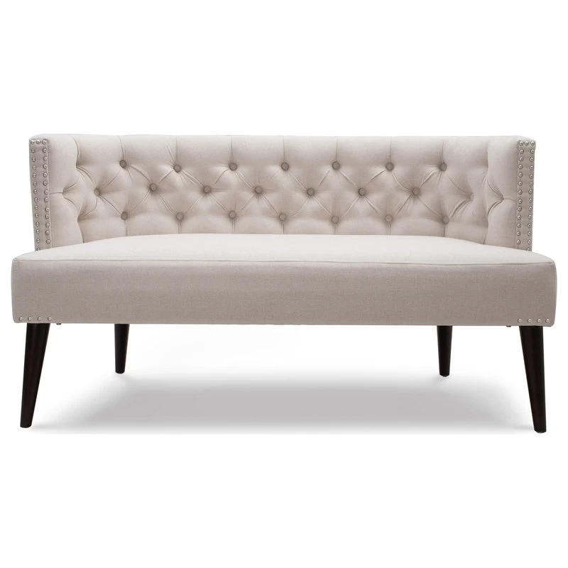 A modern settee with a traditional twist. The Celine Collection by Jennifer Taylor Home is the perfect addition to help tie in all of your home decor and furnishings together. Crafted beautifully with solid kiln-dried birch wood, upholstered with high-quality fabrics, and accented with diamond hand tufts along the back and nail head trims, the Celine is an ideal choice for the entryway, hallway, or living areas. This settee brings class and lounging comfort to any room in the home.