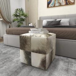 SKU: AG91E 95920 Category: Footstools & Ottomans Tags: Contemporary stool, Cowhide, Cowhide stool, Gray leather stool, Gray stool, Handmade, Handmade stool, Leather stool, Matte stool, Medium stool, Patchwork pattern stool, Patchwork stool, Square stool, Stool, Stool with patchwork pattern, White stool, White wood stool, Wood stool