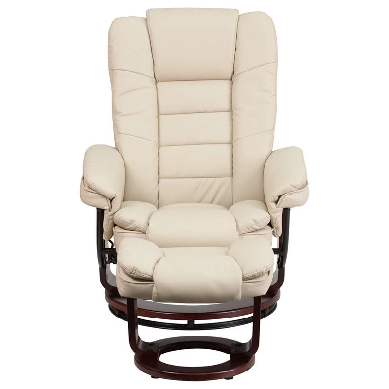There’s no better way to enjoy a movie, a book or just some down time than in a recliner. This set features thickly padded arms and tastefully exposed wood frames. This uniquely designed recliner features a ball-bearing swiveling base that makes swiveling effortless. This set is not only perfect in the home, but makes for a great addition in the office. The durable leather upholstery allows for easy cleaning and regular care.