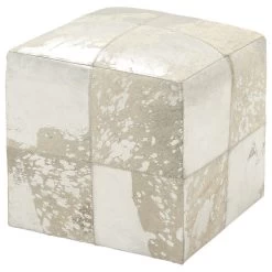 Cube leather accent stool will complement an upholstered velvet sofa with light colored pillows for a luxurious appeal. This item ships in 1 carton. Due to the handmade nature of this item, no two will be alike, there will be slight differences in shape, size, and color. Suitable for indoor use only. Leather and hair on hide are natural products, and therefore no two will be alike. There may slight variations in pattern, natural blemishes, colors, and overall aesthetic of the product. Maximum weight limit is 200 lbs. Made in India. This is a single stool. Contemporary style.