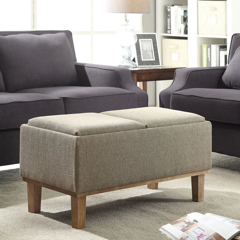 The Designs4Comfort Brentwood Storage Ottoman is a great addition for any home, offering a beautifully upholstered beige linen, reversible tray tops in a distressed weathered white finish, and plenty of storage space. Whether you use the trays to host your guests or use the compartment to store extra bedding and pillows, or even a combination, you’ll find there is an endless array of uses for the Brentwood Ottoman.