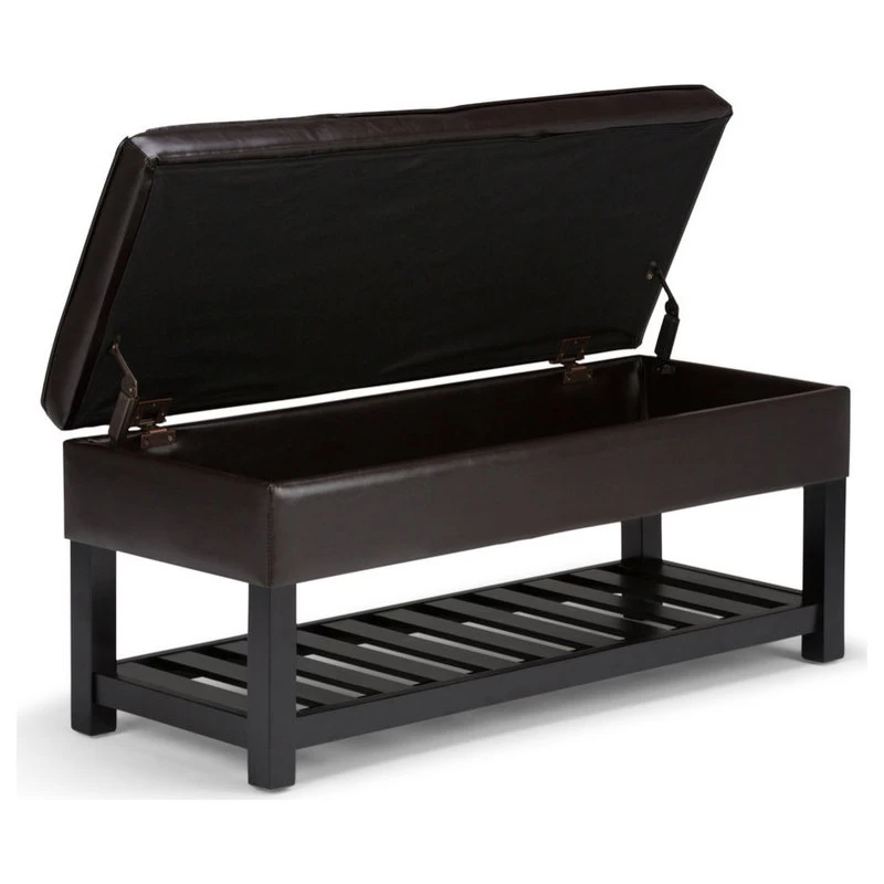 When the clutter is overwhelming, and you are looking for that perfect solution – look no further. For a stylish solution to your storage needs, the Cosmopolitan Rectangular Storage Ottoman Bench features a beautiful tufted look with an open slat bottom storage area and large interior storage space. The unit is upholstered with durable fabrics and is extra strong and sturdy. Whether you use this Ottoman Bench in your entryway, living room, family room, basement or bedroom, it will allow you to hide away all that mess.