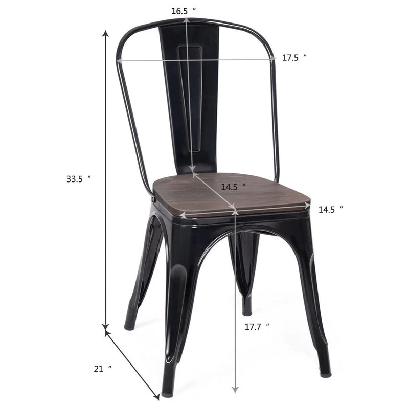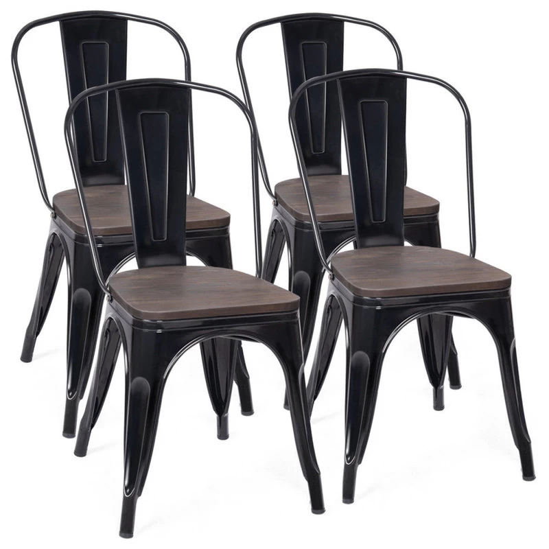 This set of metal chair could give you very deep impression with its high quality of heavy-load metal frame and elm cushion. Simple and practical, you can apply it into anywhere you can imagine, such as living room, dining room and your kitchen.4 rubber feet protect your floor from scraping.Ergonomic back give you very relaxed feel. Stackable and compact design for space saving storage. 4 in 1 set at great price. Do not hesitate to put them in your cart!