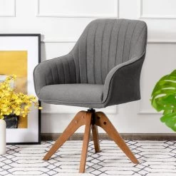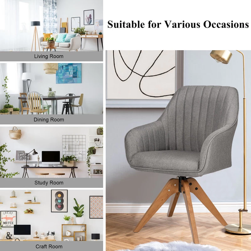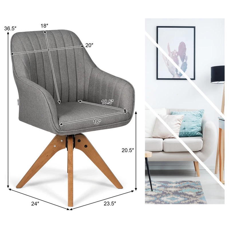 This special swivel accent chair is the best option for adding the first-class comfort to your residence. The linen chair will definitely bring elegance to any space when adding seats. There is no doubt that this multi-purpose accent chair can be used for study, work, makeup and chat. The breathable linen cloth feels good to the touch and offers a comfortable sitting feeling. This accent chair brings a comfortable sitting feeling thanks to the spacious seat filled with the high-density sponge and backrest supporting the back. Meanwhile, the beech wood legs provide a stable structure that can withstand a maximum weight of 330 lbs. This leisure chair features non-slip foot pads so that when you move the chair, it will not scratch the floor. Besides, you can move it without worrying about its noise or whether it damages the floor.