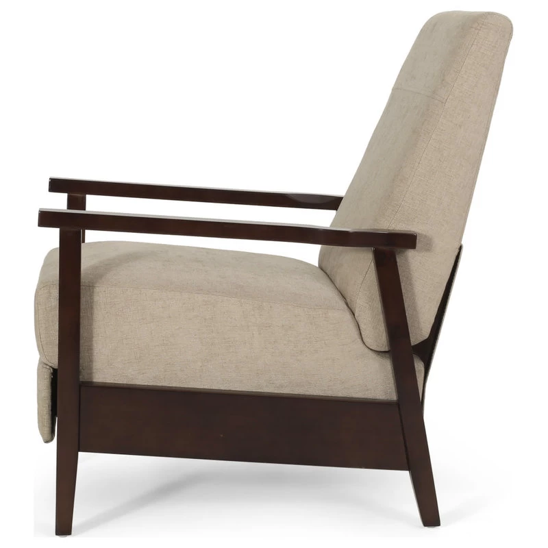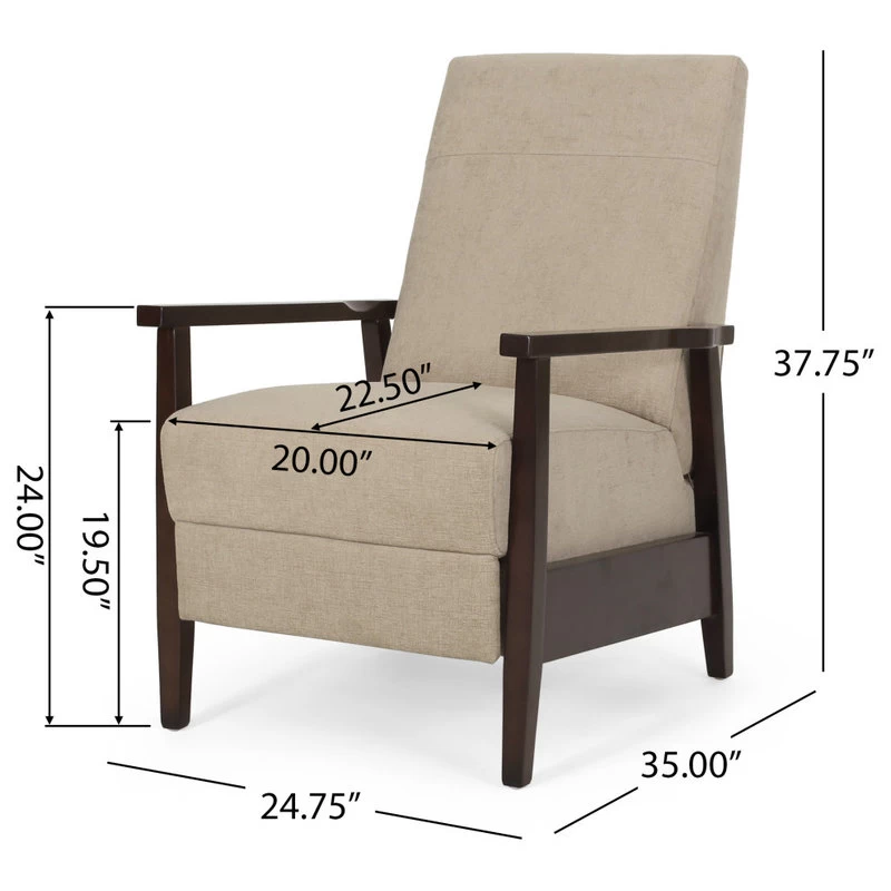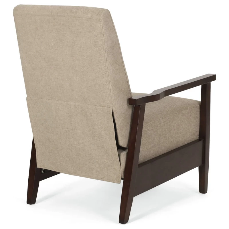 Change the way you relax in your living room with seating that provides great comfort and style. Our convenient recliner chair provides an incredibly high degree of leisure in an attractive package, emphasizing a charming contemporary design with a mid-century modern twist. Featuring smooth upholstery and a rich wood frame, this recliner pairs perfectly with the push-back functionality allowing for high comfort with little effort. Sure to become the new favorite spot of leisure, you and your family will surely enjoy this recliner for years to come.;