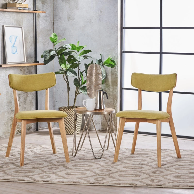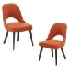 Complete the mid-century modern aesthetic in your dining room with these gorgeous, eye-catching dining chairs. These striking chairs feature soft, upholstered seats and beautifully-finished wood frames. Stunning curves and splayed legs bring even more intrigue and depth to the chic aesthetic. The combination of textures and colors adds dimension to any well-edited space. Fill your dining room with retro charm by pairing these bold and unique chairs with an equally charming dining table, a bold rug, and a coordinating sideboard.