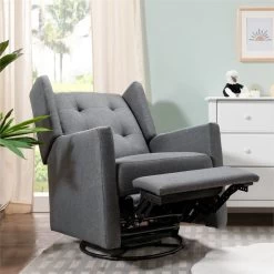 The Maddox Recliner and Swivel Glider has been thoughtfully designed to make feeding time comfortable and easy. Moms & dads can rest easy in this soft and durable recliner that glides forwards and backwards as well as swivels and reclines!