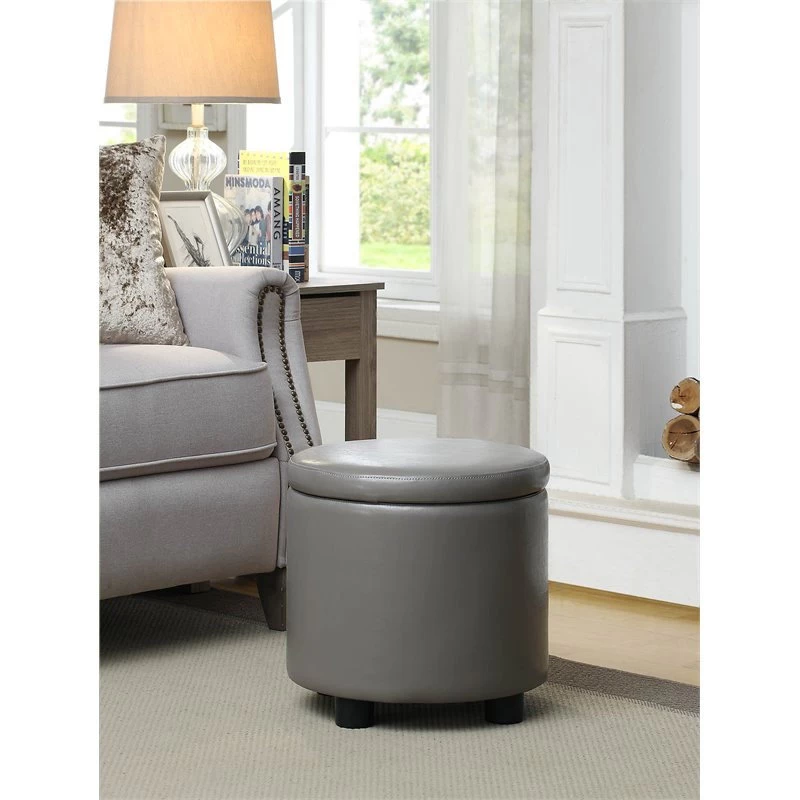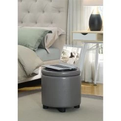 The Designs4Comfort Round Accent Storage Ottoman from Convenience Concepts will bring new life to any space. Featuring a removable lid for concealed storage that is also reversible! Flip over the lid to reveal the multifunctional tray. Use it to hold your laptop while you work or as a temporary small table top for any other odds and ends you may be using at the time. Available in multiple color finishes, this ottoman will seamlessly complement any new or existing decor.