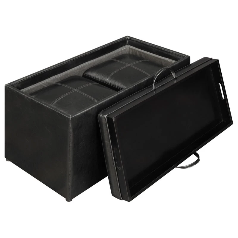 Designs4Comfort Sheridan Storage Bench with Reversible Tray and 2 Side OttoThis Designs4Comfort Sheridan Storage Bench with Reversible Tray and 2 Side Ottomans features loads of storage space with plenty of seating. Remove the top to reveal 2 side ottomans and turn the top over to find built in hardwood serving trays with cut out handles.