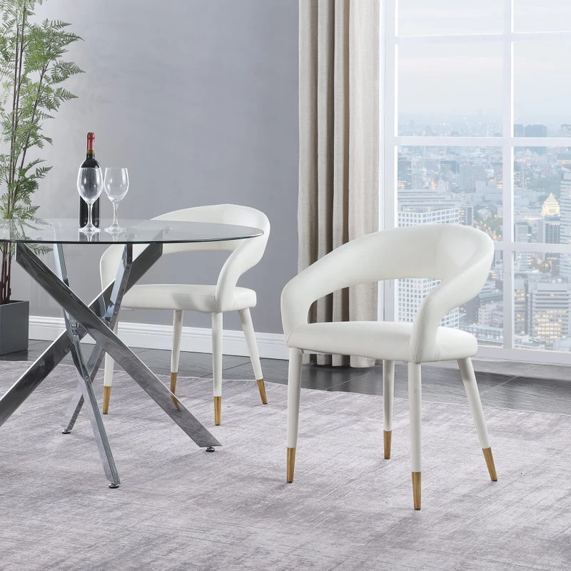 Elegant and eye-catching, the stunning White Faux Leather Destiny Dining Chair from Meridian Furniture is the perfect addition to any space.