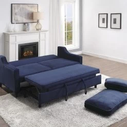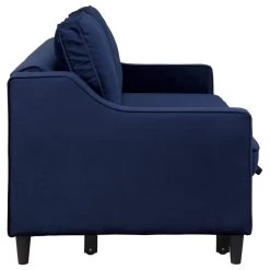 With versatility of function, the Dickinson Collection presents as a unique seating option for your household. The pull-out bed and click-mechanism seat back of this sofa engage to create a platform for sleeping or relaxing. The seatback cushions are removable as well as reversible. Offered in navy velvet cover for bold decorative placement and soft touch, the classic profile furthers the placement ability within a number of home environments.