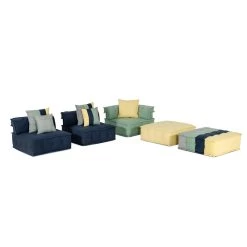 The Dubai Sofa is a modular modern style sectional sofa with an ecclectic twist. The playful color palette of the cotton fabric adds personality to any room. The low profile seating is sure to bring comfort and a sense of well traveled class. This sofa elevates any space from conteporary to farmhouse. This bohemian sofa is sure to be a showstopper.