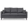 The Mathis Sofa is a plush sofa, perfect for a farmhouse style room. The double cushioned seat is filled with a foam and fiber mix providing comfort and support. The deep grey fabirc looks industrial while the wood legs are reminiscent of a mid-century design. Included with the sofa are 5 throw pillows that pad the back of the sofa.
