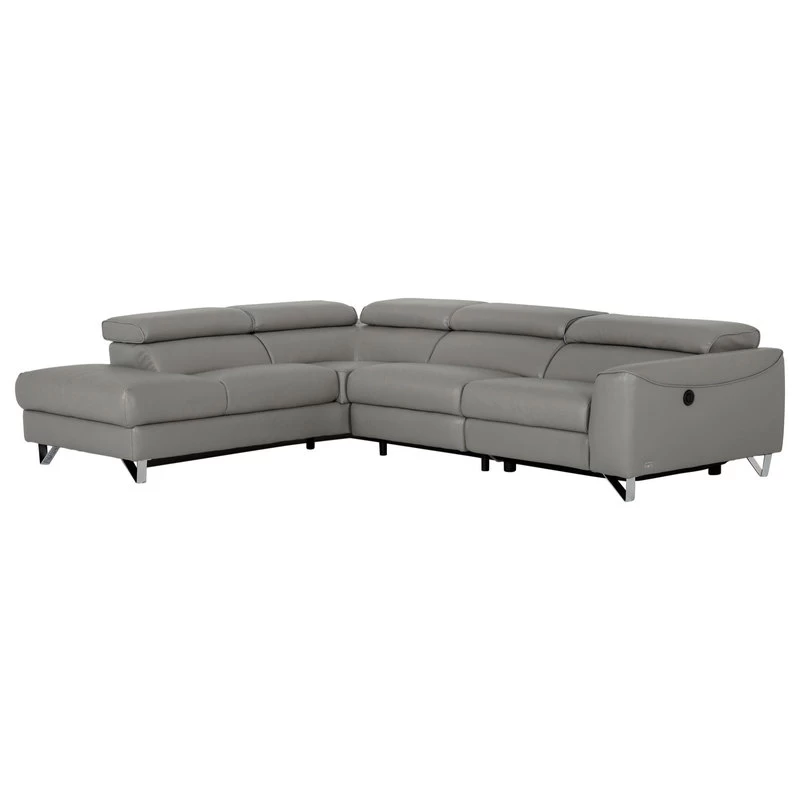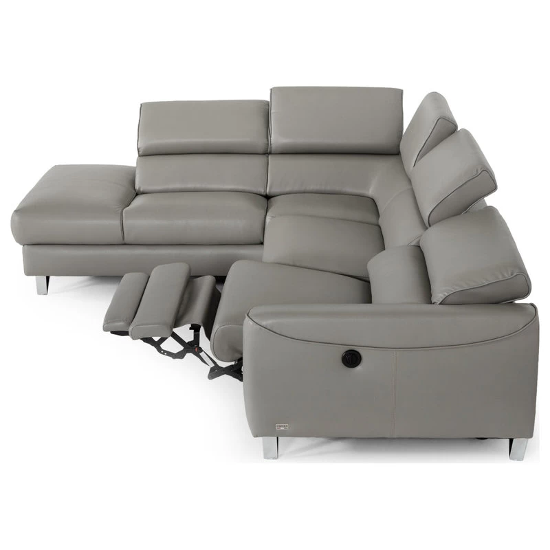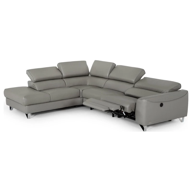 Divani Casa Versa Modern Gray Teco Leather Sectional With Recliner, Laf Chaise